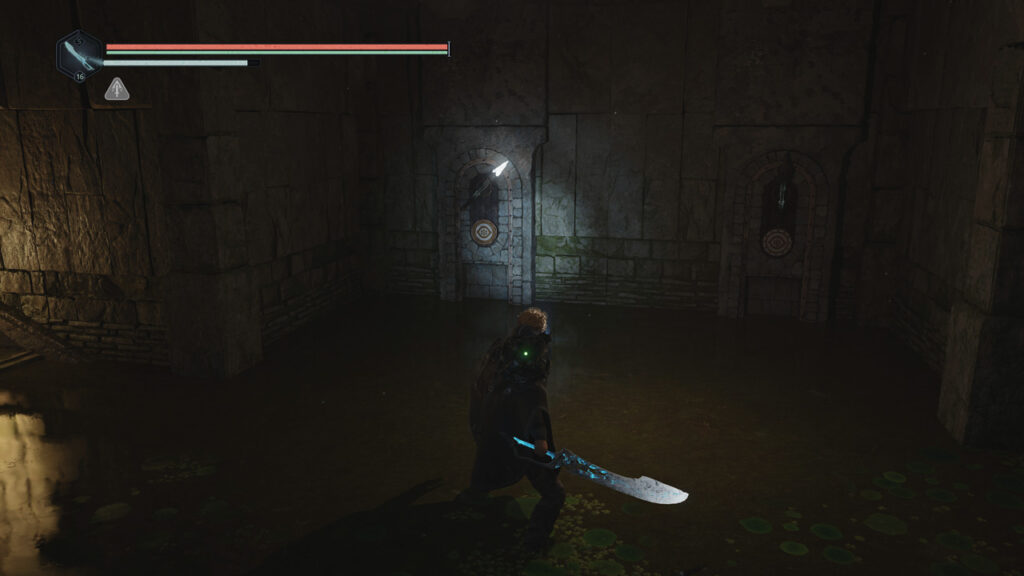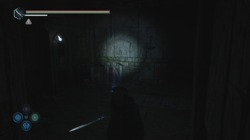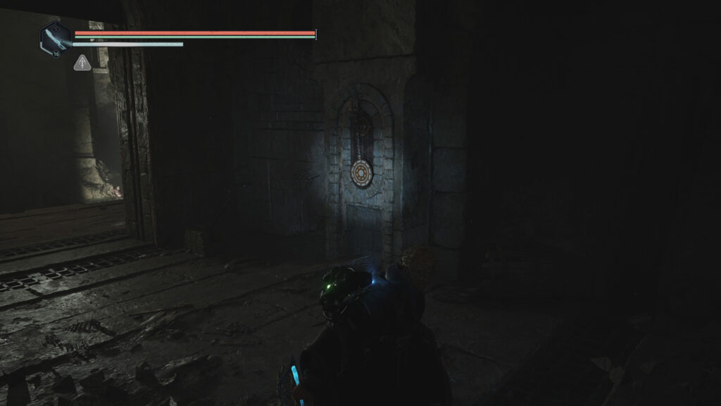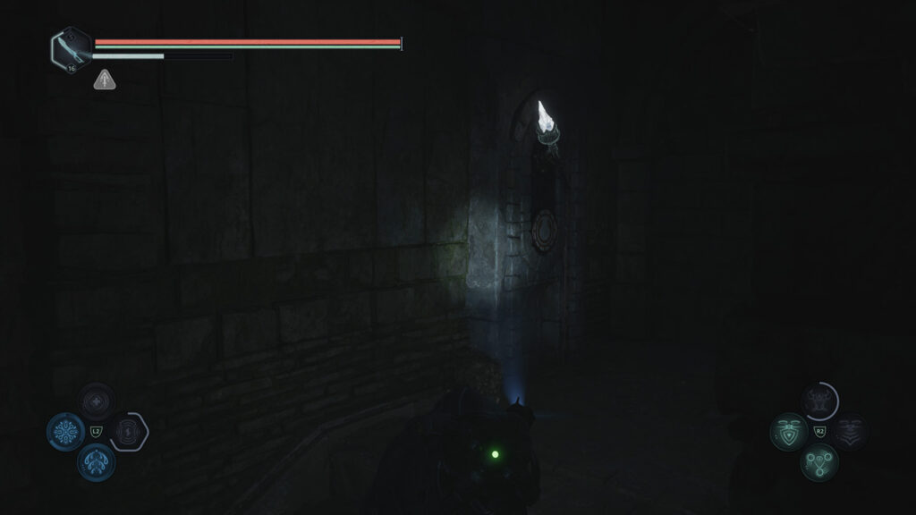 Musicie wrócić do miejsca z drzwiami i udać się drabiną piętro niżej. Tam, w jednym z korytarzy znajdziecie pierwszy zestaw kinkietów do przełączenia. Aktywujecie ten po lewej stronie.