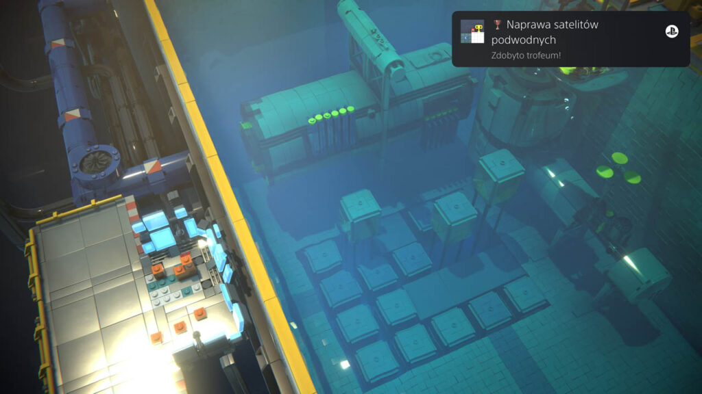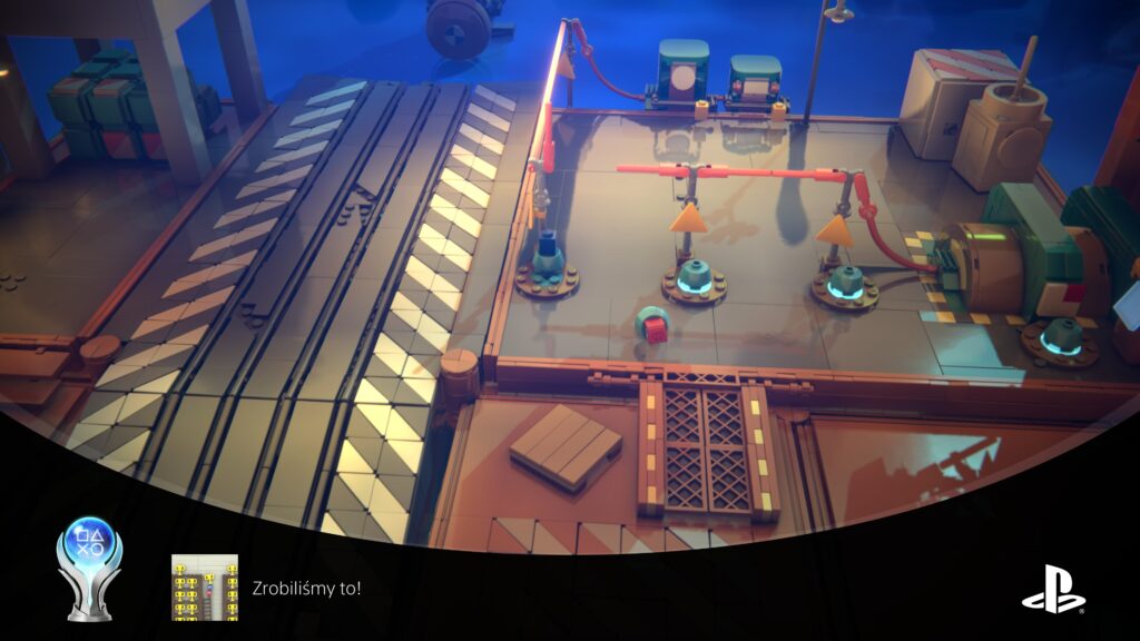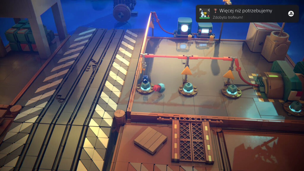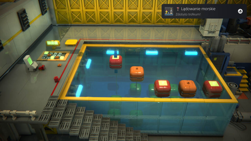 Prosta minigra, w której nasz partner musi tak ułożyć klocki, byśmy mogli wskoczyć na każdą z pływających boj. Gdy aktywujemy wszystkie trzy przyciski, trofeum zostanie zaliczone.