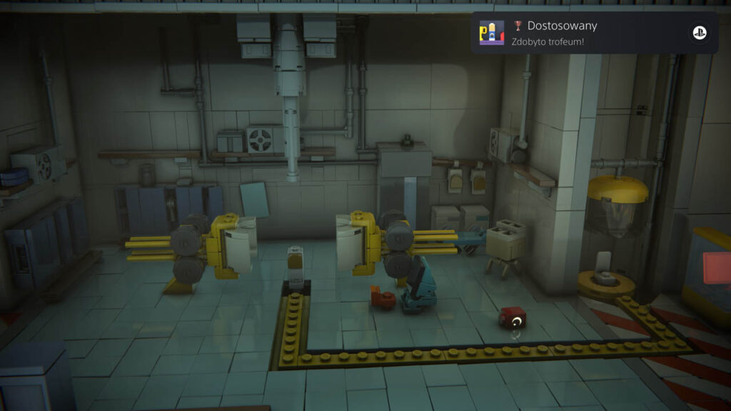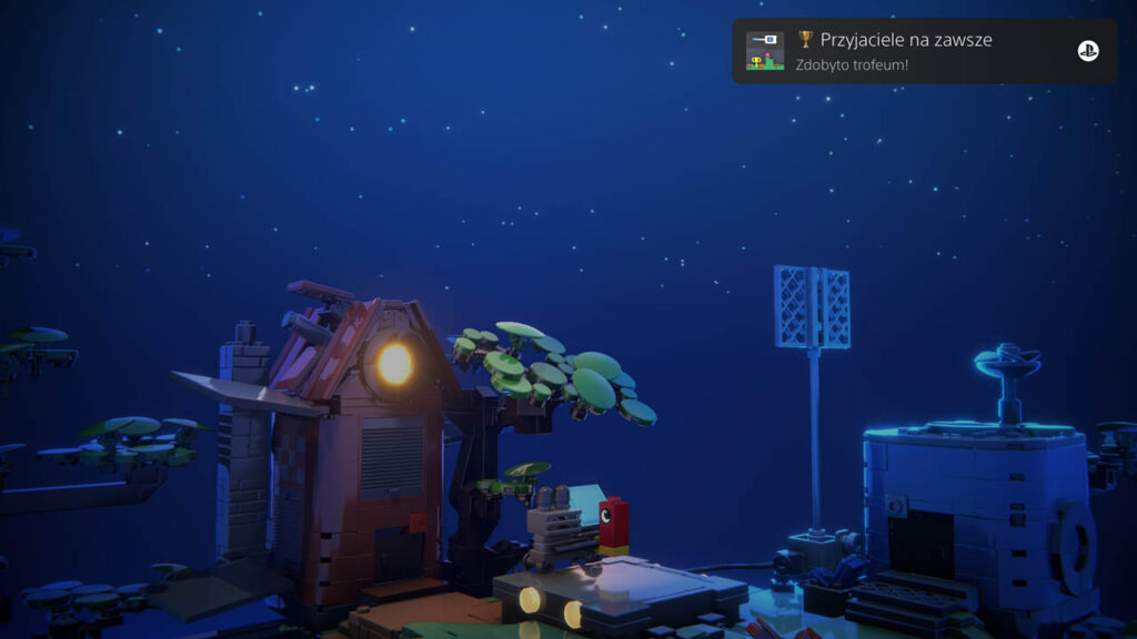 Trofeum fabularne. Nie do pominięcia. W padnie, gdy pierwszy raz zaczniemy coś budować (wciskając kółko, by wskoczyć na klocek i się nim przemieszczać). Będzie to pierwszy most, który przyjdzie nam postawić.